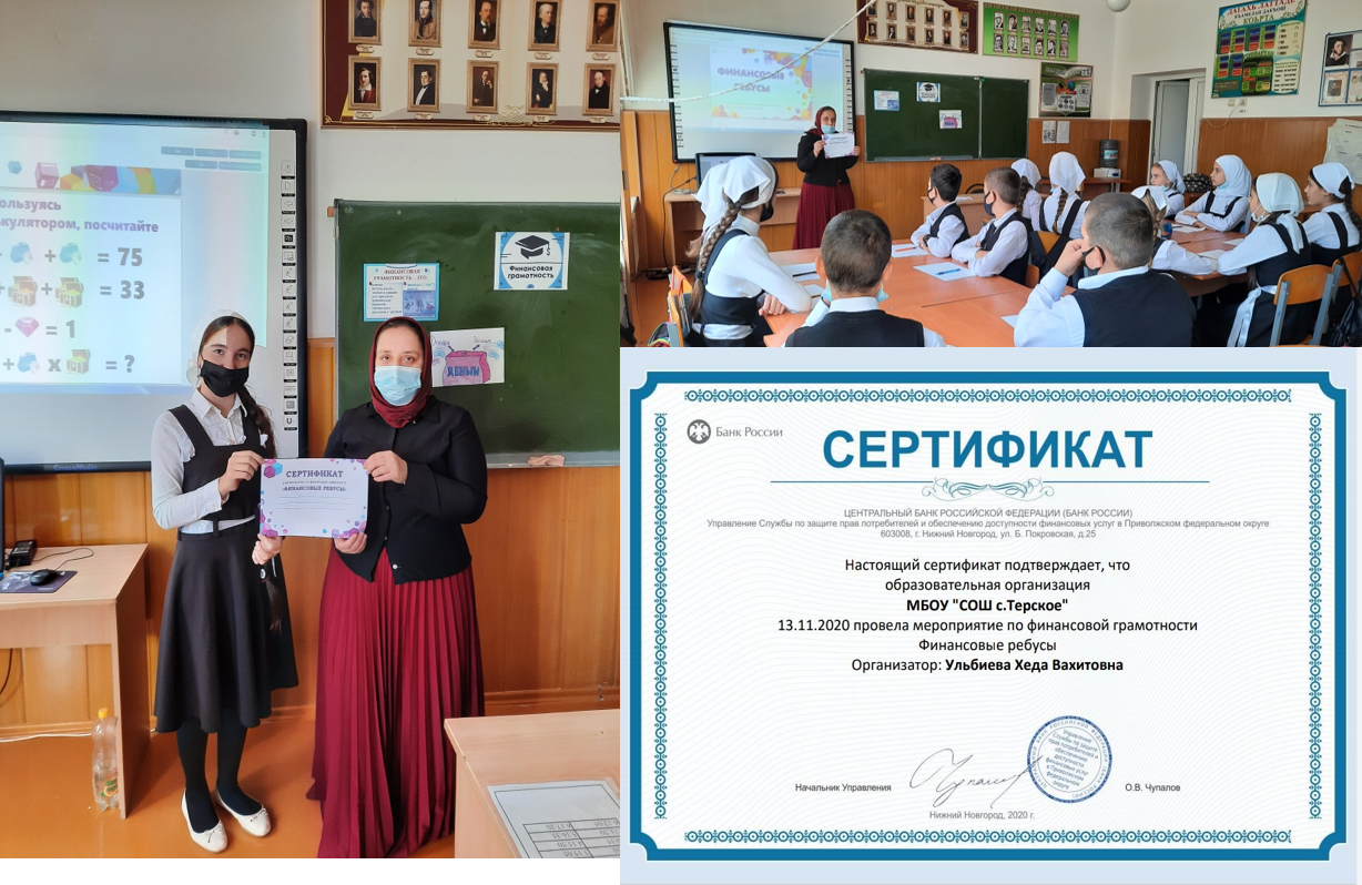 13.11.20г. Ульбиева Хеда Вахитовна провела мероприятие по финансовой грамотности на тему: "Финансовые ребусы"